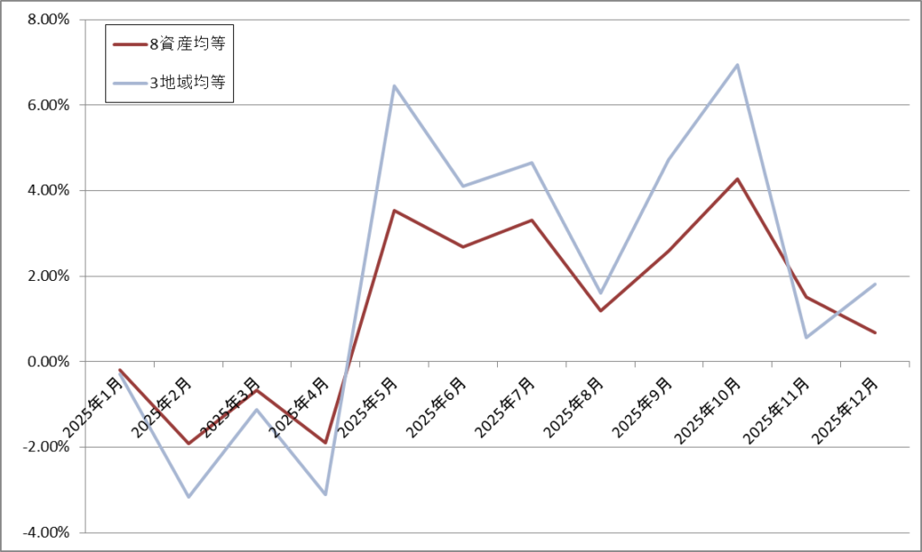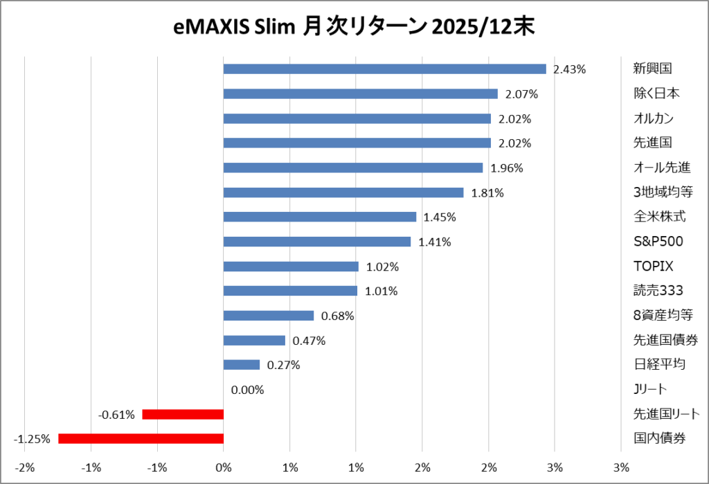 今月の一番成績が良かったのは、新興国の+2.43%でした。