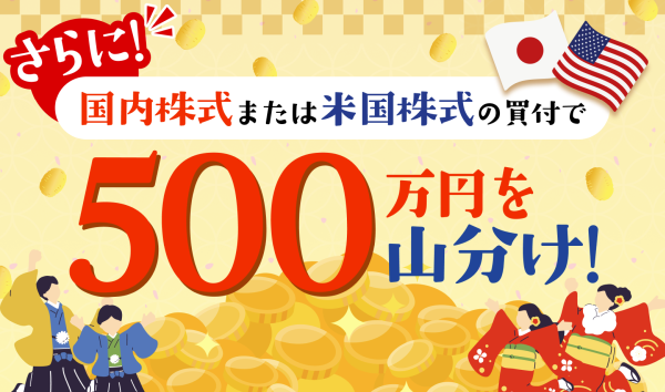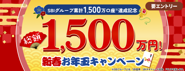 SBI証券で、総額1,500万円!新春お年玉キャンペーンを実施しています。